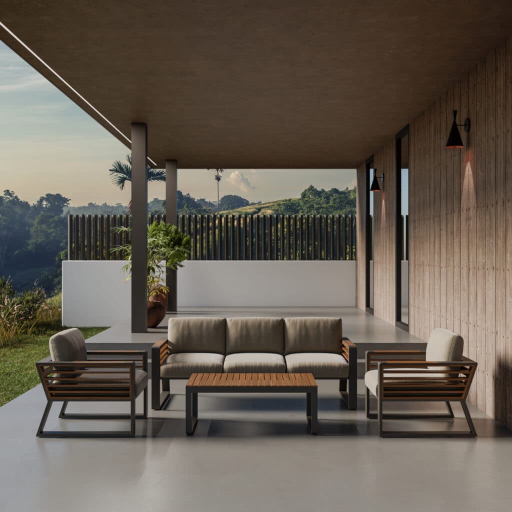Los muebles para exteriores deben ser de materiales duraderos. La teca, un tipo de madera conocida por su resistencia a la intemperie, es ideal para un ambiente veraniego. Otros materiales, como resina sintética y aluminio, también ofrecen resistencia y ligereza.
