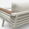 Conjunto de 4 piezas en aluminio blanco con detalles en madera sintética. Incluye un sofá de 3 plazas, dos sillones y mesa de centro, acompañado de cojines beige de 12 cm que aportan confort y estilo.