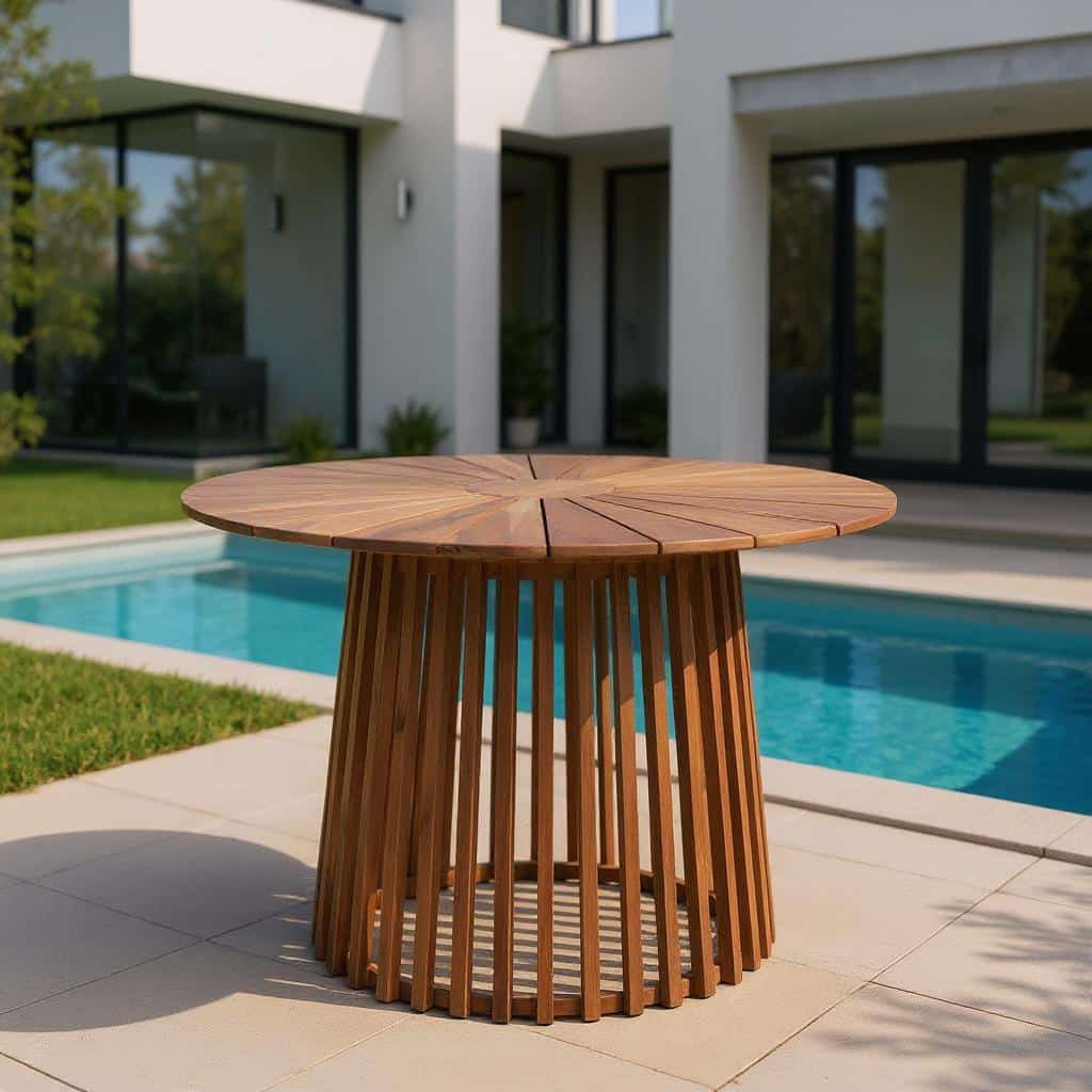 Fabricada en madera maciza de acacia, la mesa Vulcano Wood combina diseño, resistencia y calidez en una pieza redonda disponible en 160 cm y 120 cm. Ideal para comedores, terrazas o porches, su estilo atemporal y funcional crea ambientes acogedores y versátiles, perfectos para disfrutar en compañía.