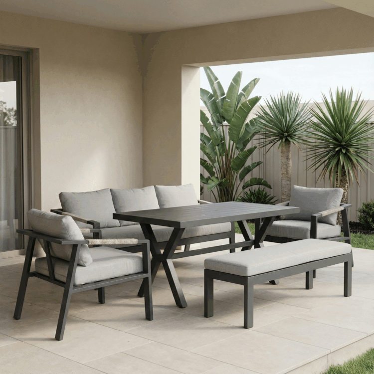 El conjunto de jardín Morea está compuesto por 4 piezas: