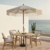 Este parasol es ideal para crear ambientes acogedores y visualmente atractivos. Su diseño en macramé combina con mobiliario de ratán, madera o fibras naturales, ofreciendo un estilo mediterráneo y bohemio muy demandado en decoración exterior.