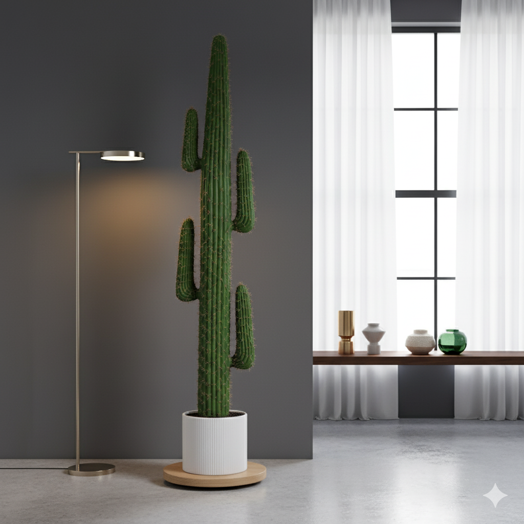Añade un toque atrevido y sofisticado a tu decoración con este cactus artificial de diseño realista. Con ramas laterales detalladas y acabados naturales, es perfecto para interiores y exteriores protegidos. Su estética escultural y durabilidad lo convierten en la elección ideal para cualquier ambiente.
