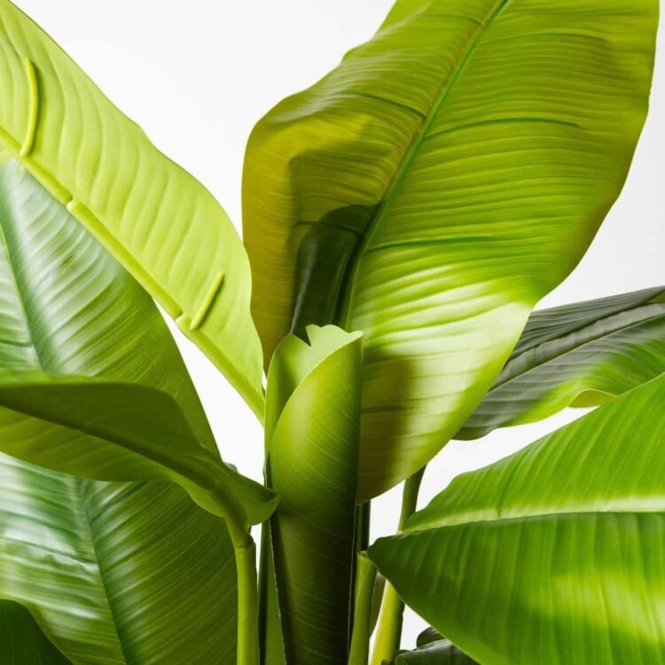 Diseño Realista y Tropical: Su aspecto natural imita a la perfección una platanera, brindando frescura y estilo a cualquier espacio.
