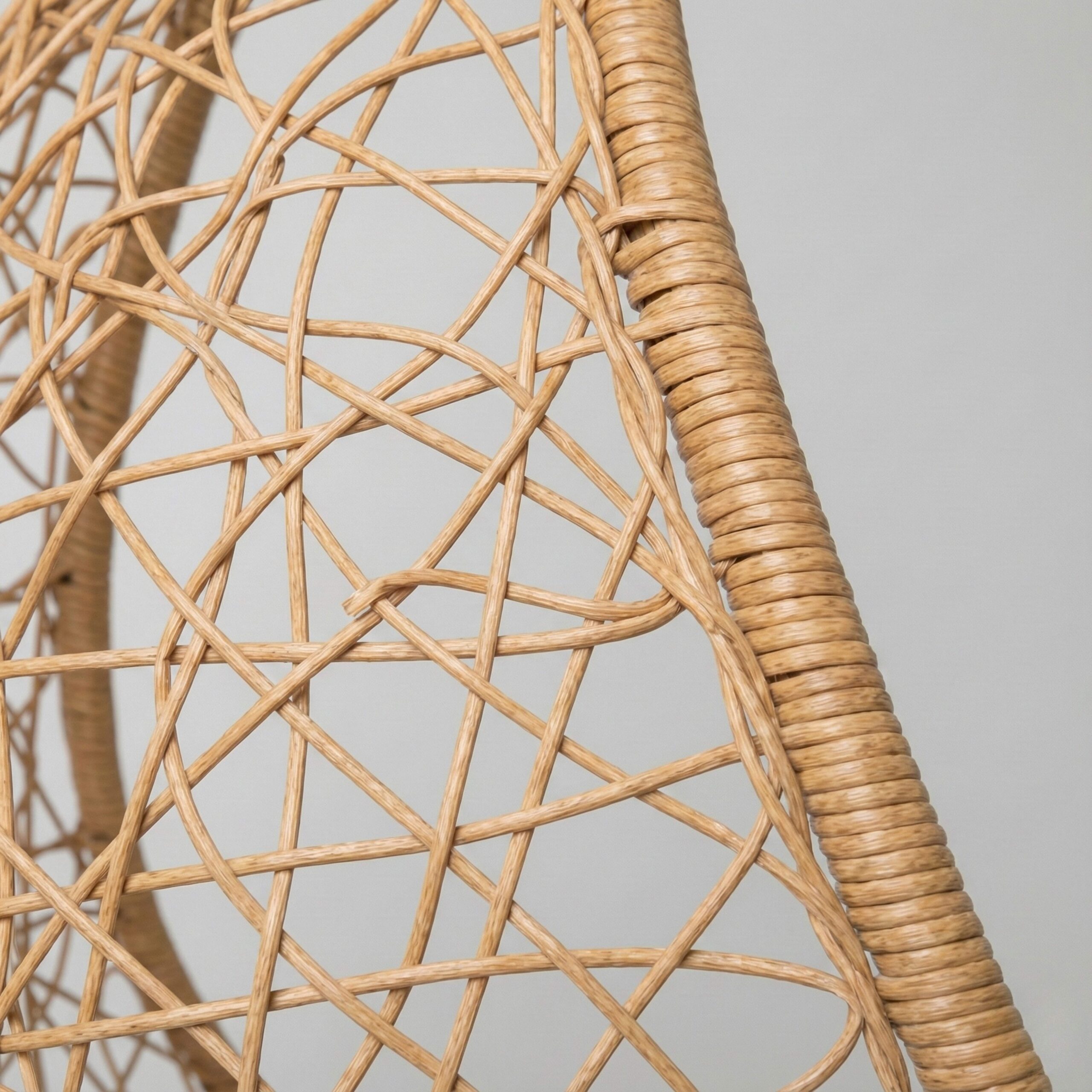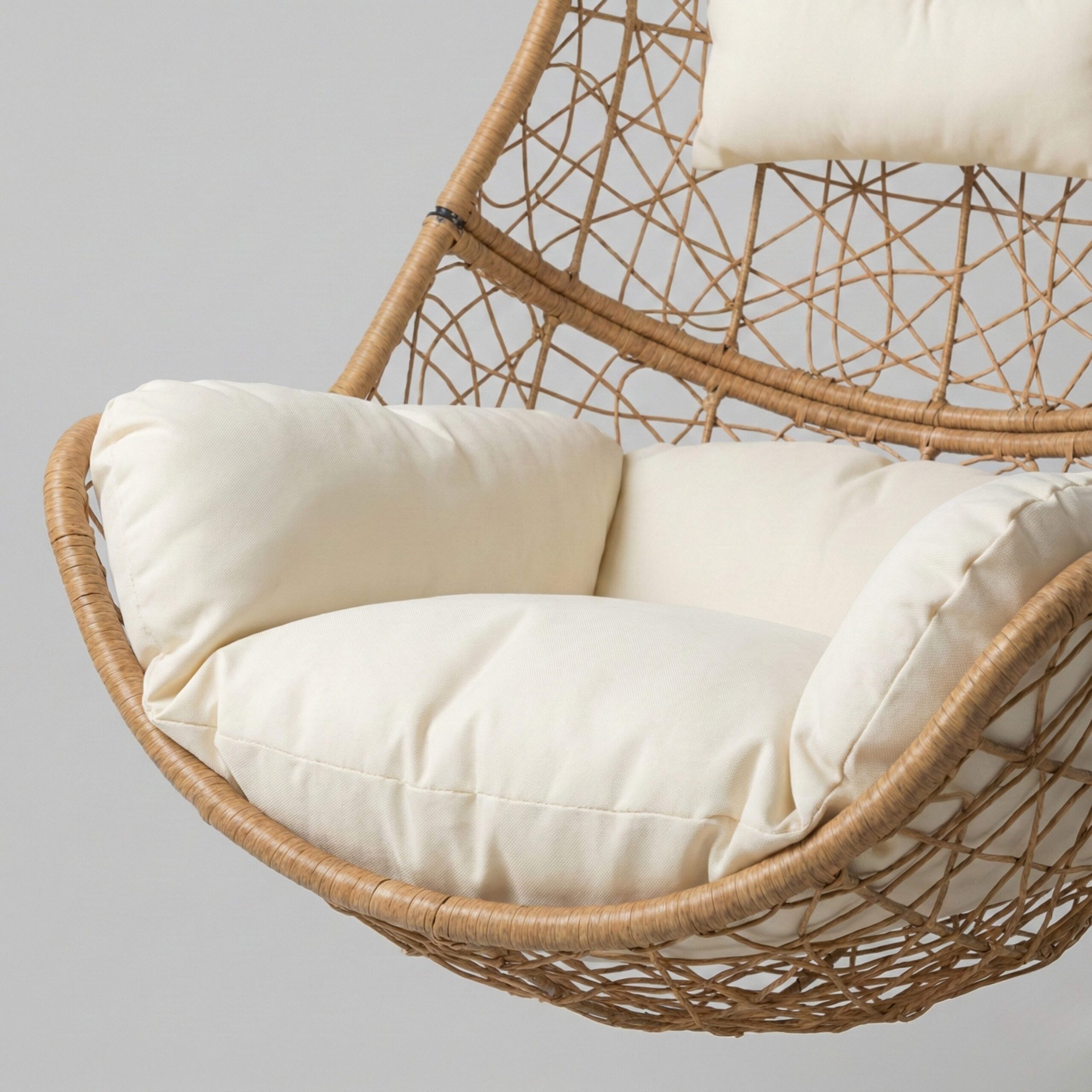 Con una estructura suspendida y un cojín mullido impermeable, este sillón ofrece una comodidad excepcional para leer, descansar o desconectar al aire libre. El entramado de ratán sintético aporta ligereza visual y un toque decorativo que combina con todo tipo de ambientes exteriores.